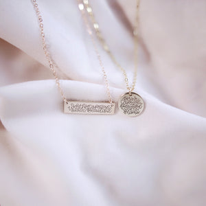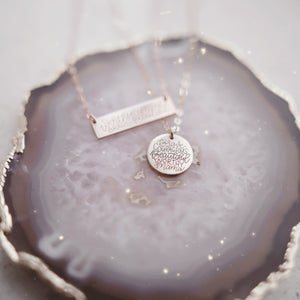 These pieces have been personally hand drawn by Jessica with a pencil in hand! This Affirmation necklace is especially special to my heart because this is what my own estranged mama would have needed to hear. It is what every mama deserves to be affirmed for. Every mama is brave, courageous, beautiful and worthy. She didn’t believe it because she wasn’t affirmed and felt completely alone. I sometimes wonder what would have been, if perhaps the right people had come into her life at just the right time to reminder her that she IS courageous to be a single, homeless mama. That she was worthy of the love that her children offered, and that her love was valuable. That she was beautiful. In a sense, this necklace is a message to the mother that needed to hear it the most at a crucial time: my own estranged mother. Perhaps things would have ended up differently.