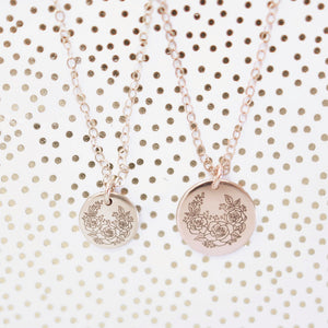 This is an engraved necklace. Each disc measures about 3/8 inches or 1/2 inch, depending on the size you pick. This listing is for a single sided necklace.
