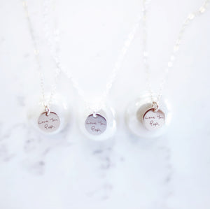 By ordering a custom upload necklace with signature/drawing, you give me freedom to orient/resize words and elements to fit the piece that you are ordering. It will be true to your upload and I will size it to fit the piece as best as I see fit while maintaining originality of your loved one's writing/drawing etc.