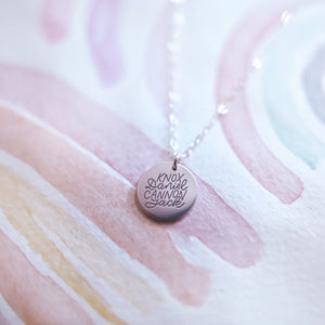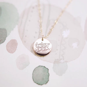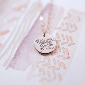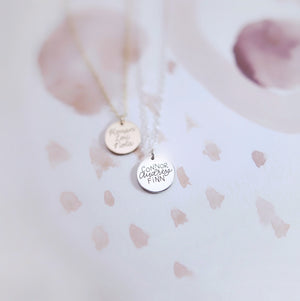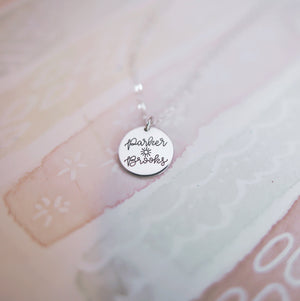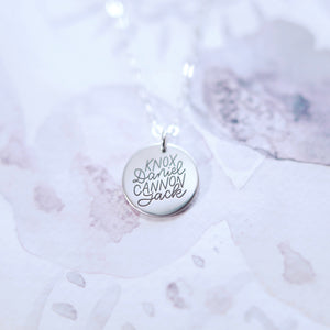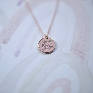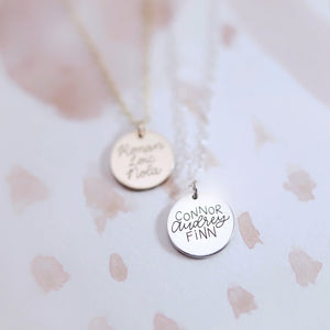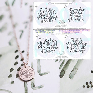 This listing is for a hand lettered disc necklace! This is as custom as it gets! Jessica will personally hand letter your necklace with scripted calligraphy! *** Please do not use this link unless we have sent you a proof. Please do not upload anything other than Jessica's proofs - your request will be cancelled as we will not be able to complete it. ***